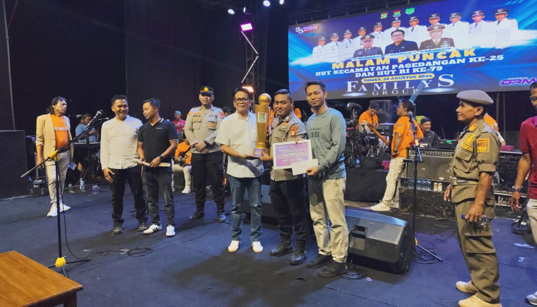 PAGEDANGAN- Kemeriahan malam puncak HUT Kecamatan Pagedangan Ke-25 dan HUT RI Ke-79 Tahun 2024, Jumat (23/08) Antusias Masyarakat Kecamatan Pagedangan memenuhi lapangan Parkir Dewa United di Desa Cicalengka Kecamatan Pagedangan untuk menyaksikan Meriahnya Malam Puncak HUT Kecamatan Pagedangan Yang Ke-25 dan HUT RI Ke-79 yang diramaikan oleh Dandut Familys Group. Malam Puncak HUT Kecamatan Pagedangan Ke-25 dan HUT RI Ke-79 Merupakan Penutup dari semua rangkaian kegiatan dalam Rangka Memeriahkan HUT Kecamatan Pagedangan Ke-25 dan HUT RI Ke-79 Tahun 2024. Rangkaian Kegiatan Malam Puncak salah satu diantaranya Pembagian Tropy Pemenang Turnamen Sepakbola Camat Cup U-40 Tahun 2024 Kecamatan Pagedangan yang di Juarai Oleh Team Sepak Bola Oldstar Desa Situgadung dan Runner-up Team sepak bola Oldstar Desa Cihuni serta 2 Semifinalis yaitu Oldstar Desa Cicalengka dan Oldstar Desa Kadusirung, dengan Pemain Terbaik diraih oleh H. Achmad Kunaefi, S.IP yang juga merupakan salah satu Kepala Desa yang Aktif di Dunia Sepak Bola. Acara Malam Puncak berlangsung dengan meriah dengan musik-musik dangdut yang dibawakan oleh artis-artis dari Familys Group. Sampai acara berakhir semua berjalan lancar, aman dan tertib. Pemerintah Kecamatan Pagedangan Mengucapkan Terima kasih Kepada Semua Pihak yang Terlibat serta Kepada Masyarakat Kecamatan Pagedangan atas Partisipasinya sehingga Perayaan HUT Kecamatan Pagedangan Yang Ke-25 dan HUT RI Ke-79 Tahun 2024 berjalan dengan sukses