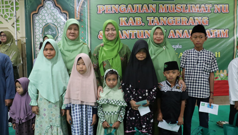 TANGERANG - Muslimat Nahdlatul Ulama (NU) bersama Badan Amil Zakat Nasional (Baznas) Kabupaten Tangerang menggelar pengajian sekaligus santunan anak yatim dalam rangka memperingati Bulan Muharram di Masjid Agung Al-Amjad Tigaraksa Kabupaten Tangerang, Kamis (8/8/2024).