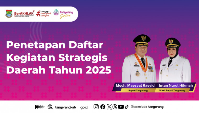Bahwa Pemerintah Kabupaten Tangerang menetapkan 10 Kegiatan Strategis Daerah yang ditetapkan melalui SK Bupati Nomor 000.7.6/Kep.88-Huk/2025 tentang Penetapan Daftar Kegiatan Strategis Daerah dalam APBD Tahun anggaran 2025 yang dapat diakses pada website Sistem Informasi Rencana Umum Pengadaan LKPP pada tautan berikut https://sirup.lkpp.go.id/sirup/rekap/penyedia/D50