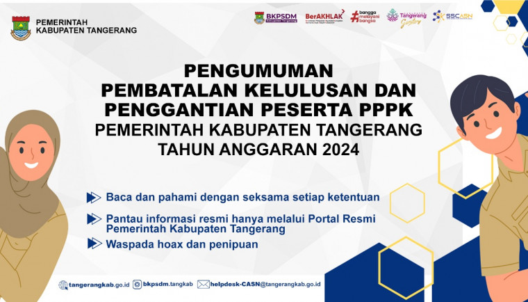 TENTANG PEMBATALAN KELULUSAN DAN PENGGANTIAN KELULUSAN PESERTA PENERIMAAN PEGAWAI PEMERINTAH DENGAN PERJANJIAN KERJA TENAGA KESEHATAN DAN TENAGA TEKNIS DI LINGKUNGAN PEMERINTAH KABUPATEN TANGERANG TAHUN ANGGARAN 2024